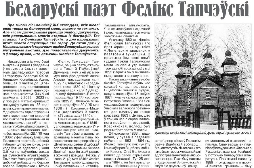 Хвэлька з Рукшэніц - псеўданім паэта XIX ст. Фелікса Тапчэўскага, пра сям'ю і лёс якога ідзе гаворка ў артыкуле Яўгена Глінскага, Максіма Макарава і Дзмітрыя Мацвейчыка.
