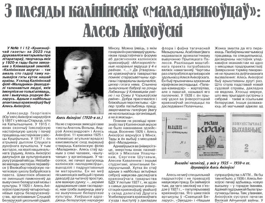 Хто такі Алесь Аніхоўскі? Як з'явіліся газета і часопіс "Маладняк Калініншчыны"? Пра ролю для беларускай культуры і трагічны лёс натхнёнага краязнаўцы, настаўніка расказваецца ў артыкуле Аляксандры Вайтовіч.