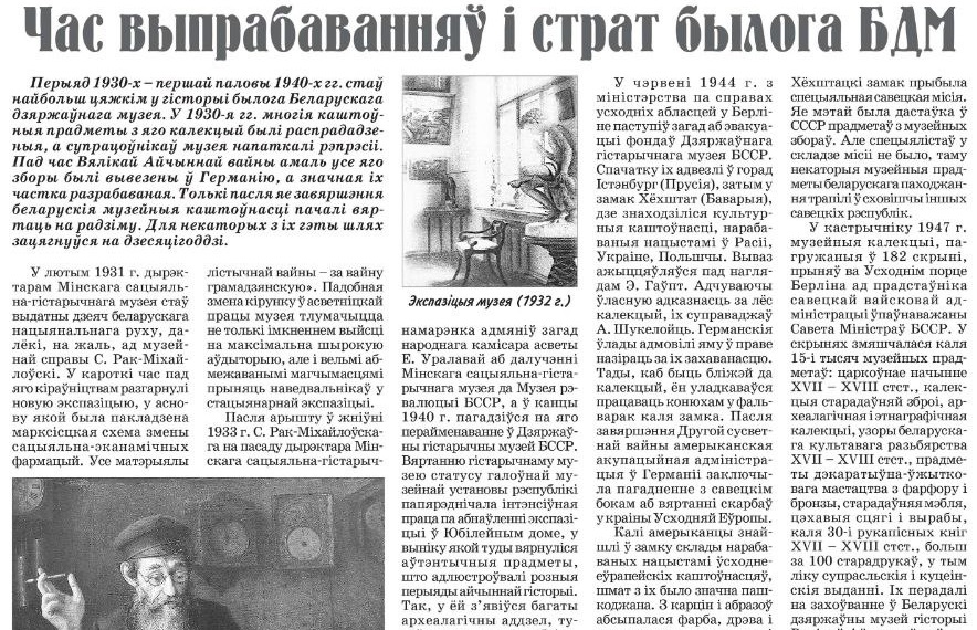 Што адбывалася з калекцыяй Беларускага дзяржаўнага музея у 1930-х-1940-х гадах? Дзе знайшлі скарбы музея пасля вайны і якім чынам калекцыя вярталася на радзіму? Слухайце аповед Максіма Гальпяровіча паводле артыкула Аляксандра Гужалоўскага.