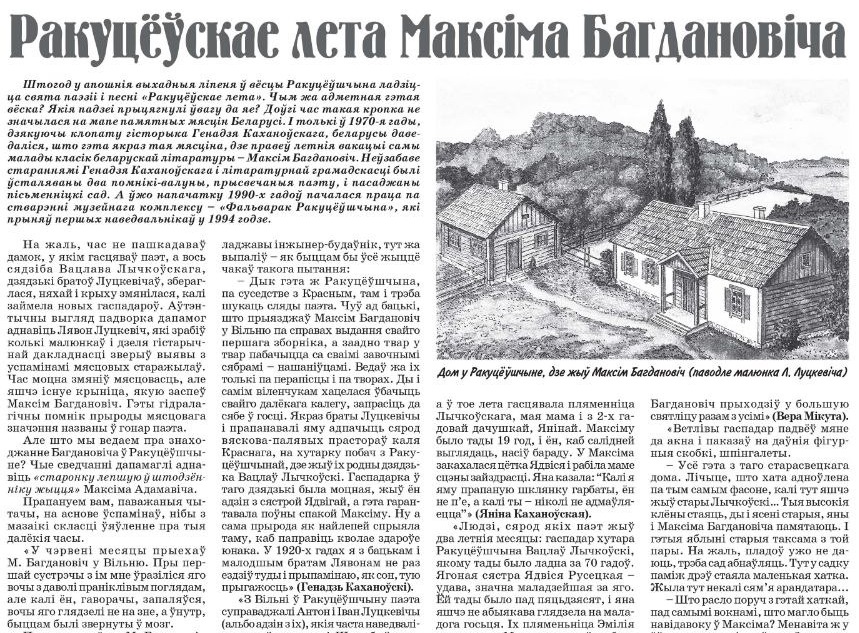 Толькі адно лета правёў Максім Багдановіч у в. Ракуцёўшына, але, дзякуючы ўспамінам Яніны і Генадзя Каханоўскіх, Вацлава Ластоўскага, Веры Мікуты, Лявона Луцкевіча, мы зараз дастакова шмат ведаем пра гэты перыяд.
