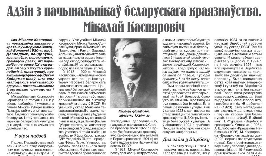 Пра складаны лёс пачынальніка беларускага краязнаўства, даследчыка Мікалая Каспяровіча распавядаецца ў артыкуле кандыдата гістарычных навук Антона Дзянісава. Чытае галоўны рэдактар Краязнаўчай газеты Максім Гальпяровіч.