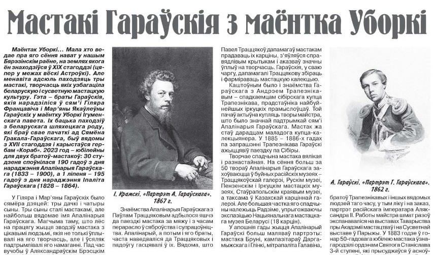 Адно невялікае мястэчка дало свету трох мастакоў - братоў Гараўскіх. Пра найбольш знакамітага з іх, Апалінарыя Гараўскага, прызнанага Рэпіным, Крамскім, Бенуа ды іншымі знакамітымі сучаснікамі, расказвае Максім Гальпяровіч паводле артыкула Вікторыі Багадзяж.