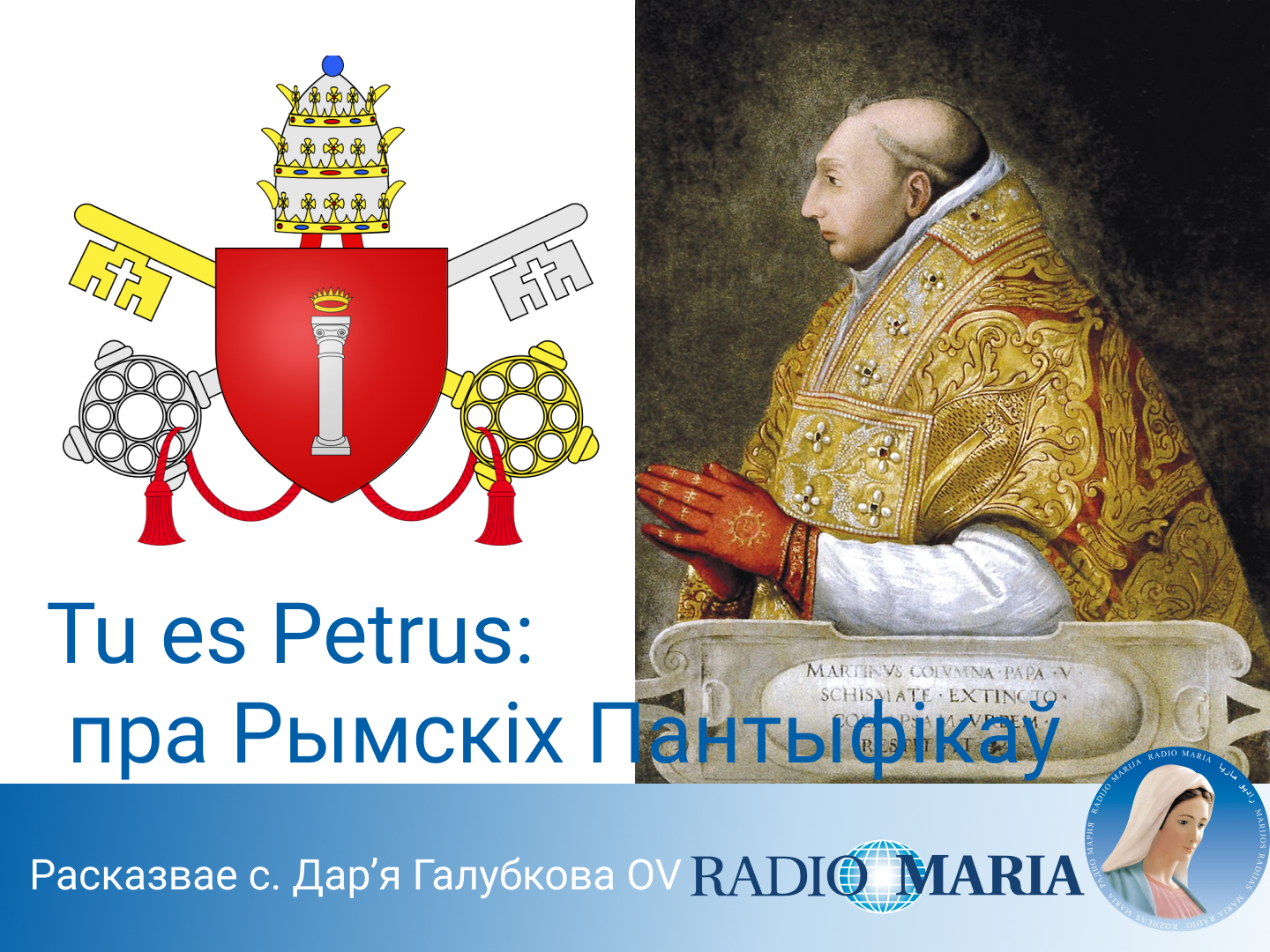 Пра Вялікую заходнюю схізму і пантыфікат Папы Марціна V распавядае сястра Дар'я Галубкова OV у праграме Tu es Petrus: пра Рымскіх Пантыфікаў.