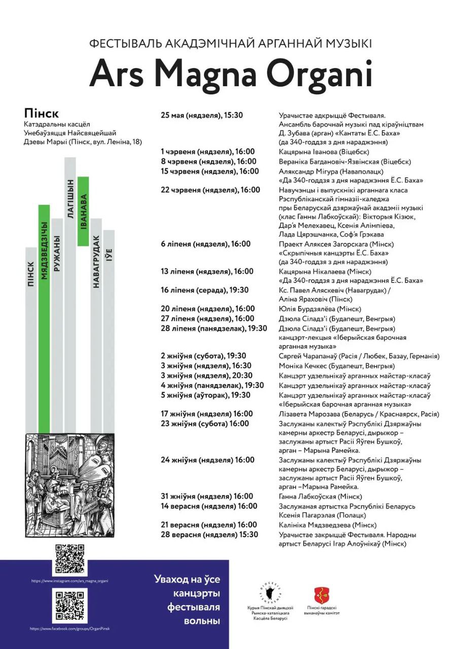 Па просьбах слухачоў друкуем праграму ўсіх канцэртаў V фестываля арганнай музыкі Ars Magna Organi. Уваход на ўсе канцэрты вольны. Слухайце добрую музыку разам Радыё Марыя!