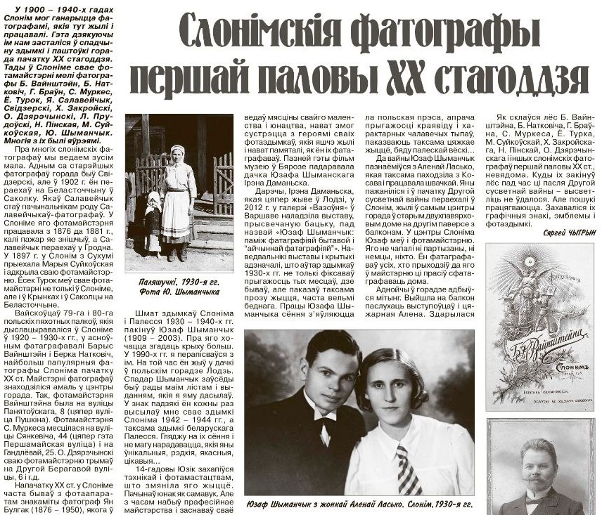 Браўн, Муркес, Турок, Салавейчык, Свідэрскі, Суйкоўская, Вайнштэйн - толькі частка прозвішчаў фатографаў, што мелі свае майстэрні ў Слоніме першай паловы XX стагоддзя.