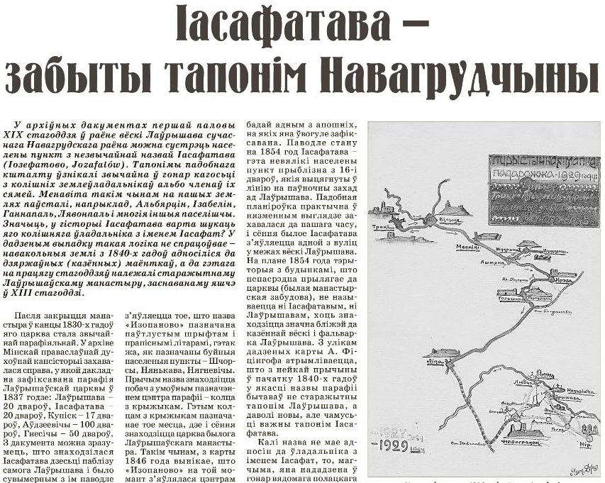 Адкуль на землях, якія некалькі стагоддзяў належалі Лаўрышаўскаму манастыру, з'явілася мястэчка з незвычайнай назвай Іасафатава? Чы мае яно адносіны да знакамітага полацкага ўніяцкага архіепіскапа Іасафата Кунцэвіча?