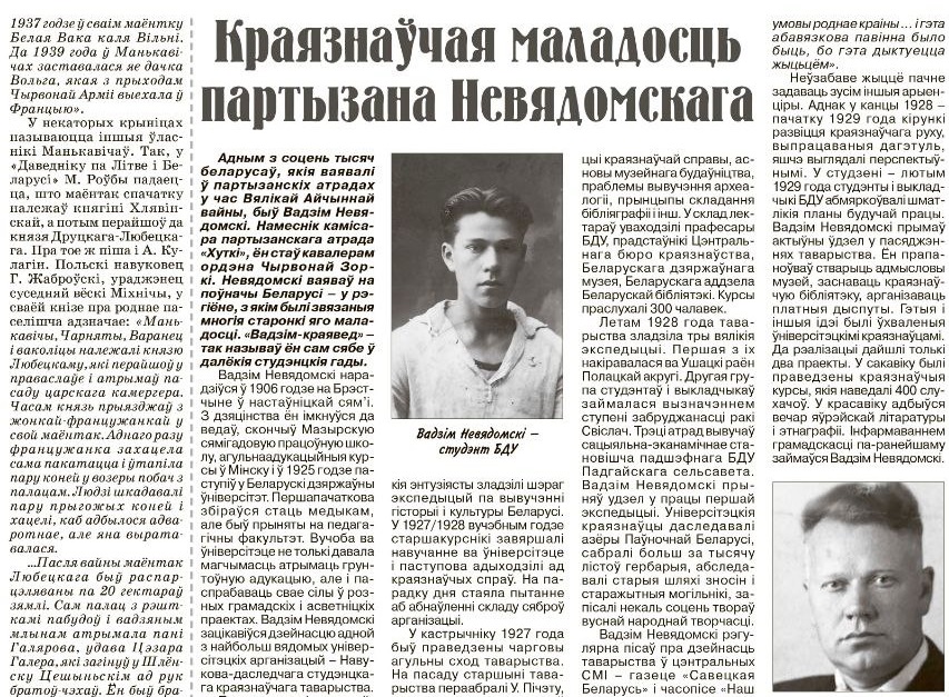 "Вадзім-краявед" - так называў сябе ў маладосці Вадзім Невядомскі, будучы намеснік камісара партызанскага атрада "Хуткі".