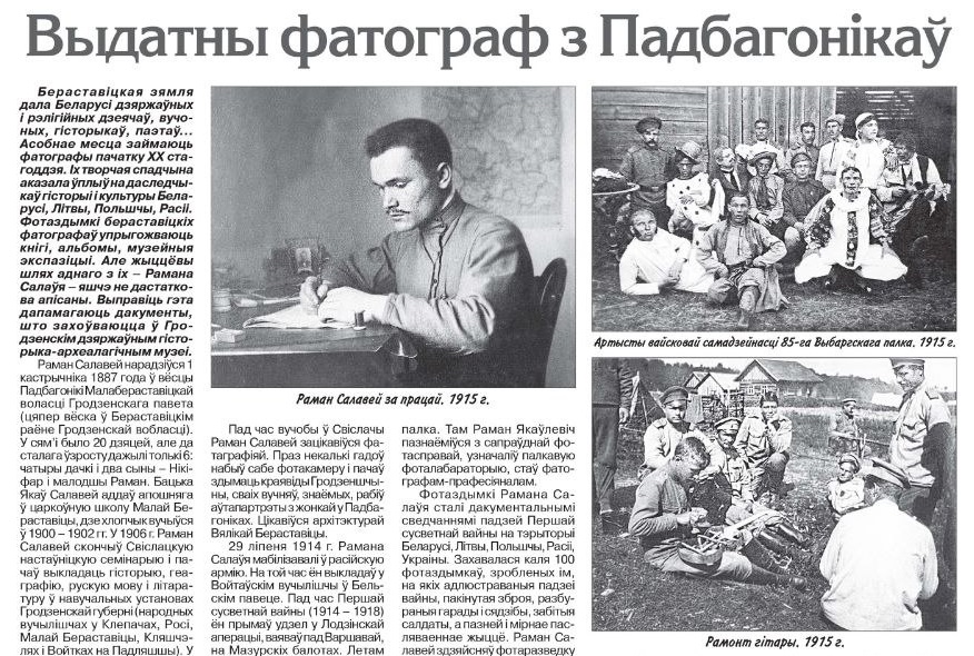 Фатографы пачатку 20 стагоддзя - апантаныя людзі, дзякуючы якім мы маем магчымасць паглядзець на мінулыя часы. Пра настаўніка гісторыі, геаграфіі, літаратуры і фатографа Рамана Салаўя,