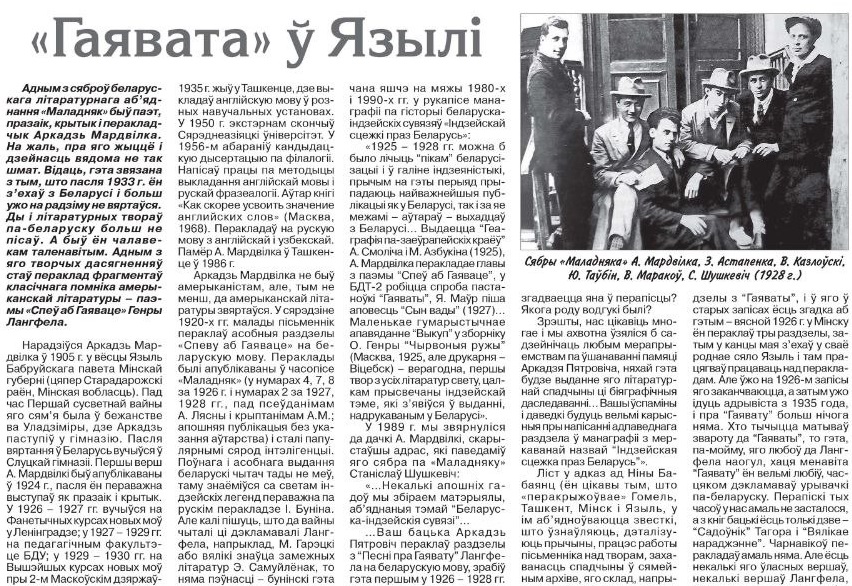 Чалавек, які зрабіў пераклад некалькіх частак "Спеву аб Гаяваце" на беларускую мову, але, на жаль, не змог працягнуць працу над творам і ўрэшце рэшт перастаў пісаць па-беларуску. Паэт, празаік, крытык, выкладчык і перакладчык з аглійскай і ўзбекскай моў, Аркадзь Мардвілка, якога спасціг няпросты, але шчаслівы лёс - герой артыкула Алеся Сімакова.