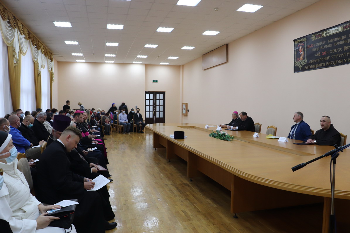 Выступ ганаровага арцыбіскупа Тадэвуша Кандрусевіча на канферэнцыі ў Бялынічах пра адраджэнне іерархічных структур Каталіцкага Касцёла на Беларусі.