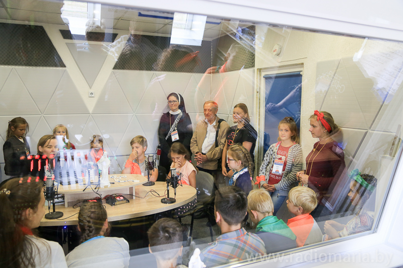 Аднойчы яны прывезлi iх у невялiчкае памяшканне, якое праз пару хвiлiн, калi загарэлася чырвоная лямпа, зачынілася... I вось тут пачалося самае цiкавае: малiтва i падзяка, усмешкi i радасць, шчырасць i адкрытасць - усё гэта злiлося ў адно, калi мы толькi зайшлi у студыю «Радыё Марыя». Уся гэтая прыгода адбылася падчас летніка «Канiкулы з Богам», дзе мы яшчэ больш пазнаём Бога, асаблiва ўсе цуды, якiя Ён здзейсніў, мы праслаўляем Яго нашымi спевамi, танцамi, а таксама добрымi учынкамi. Мы вельмi удзячныя за тое, што нам далi магчымасць папрысутнiчаць на «Радыё Марыя» i паназiраць за працаю сапраўдных майстраў! А колькi яшчэ незвычайнага чакае нас наперадзе!!!