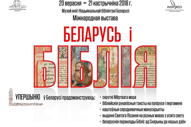 З 20 верасня па 21 кастрычніка ў Нацыянальнай бібліятэцы Беларусі будуць дэманстравацца каля 200 унікальных рукапісных і старадрукаваных помнікаў кніжнай культуры, што адлюстроўваюць гісторыю стварэння, распаўсюджвання і захавання Бібліі.